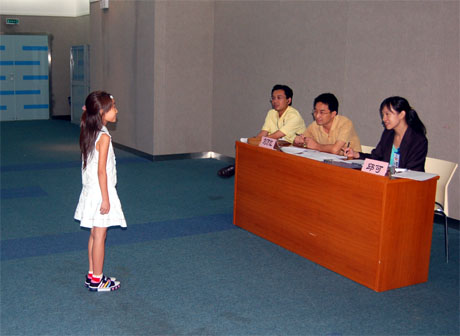 招生包括合唱团、舞蹈团、民乐团、管乐团、弦乐团和领袖团六个团队,考试分上、下午进行。由各团队专业老师和专家主考,现场气氛热烈,考生们个个精神抖擞,信心百倍,都希望能凭自己的实力考入这高水平的团队。
