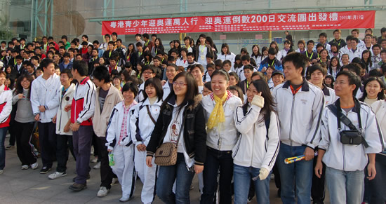昨天上午,“粤港青少年迎奥运倒数200天” 活动在深圳少年宫启动,来自粤港两地的400多名青少年参加了启动仪式(右图)。此次活动由广东省青年联合会和粤港青年交流促进会共同主办。