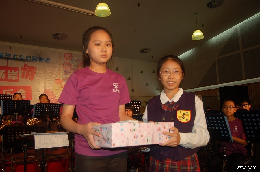 演出开始前举行了简短的欢迎仪式,深圳市少年宫主任单协和、台湾文华小学校长吴俊生分别作了热情洋溢的讲话、共同祝愿此举必将为推动两岸两地青少年文化交流,增进友谊,加深了解和共同进步做出积极贡献,仪式上两团还互赠了纪念品以表达两团交流合作的深情厚意。