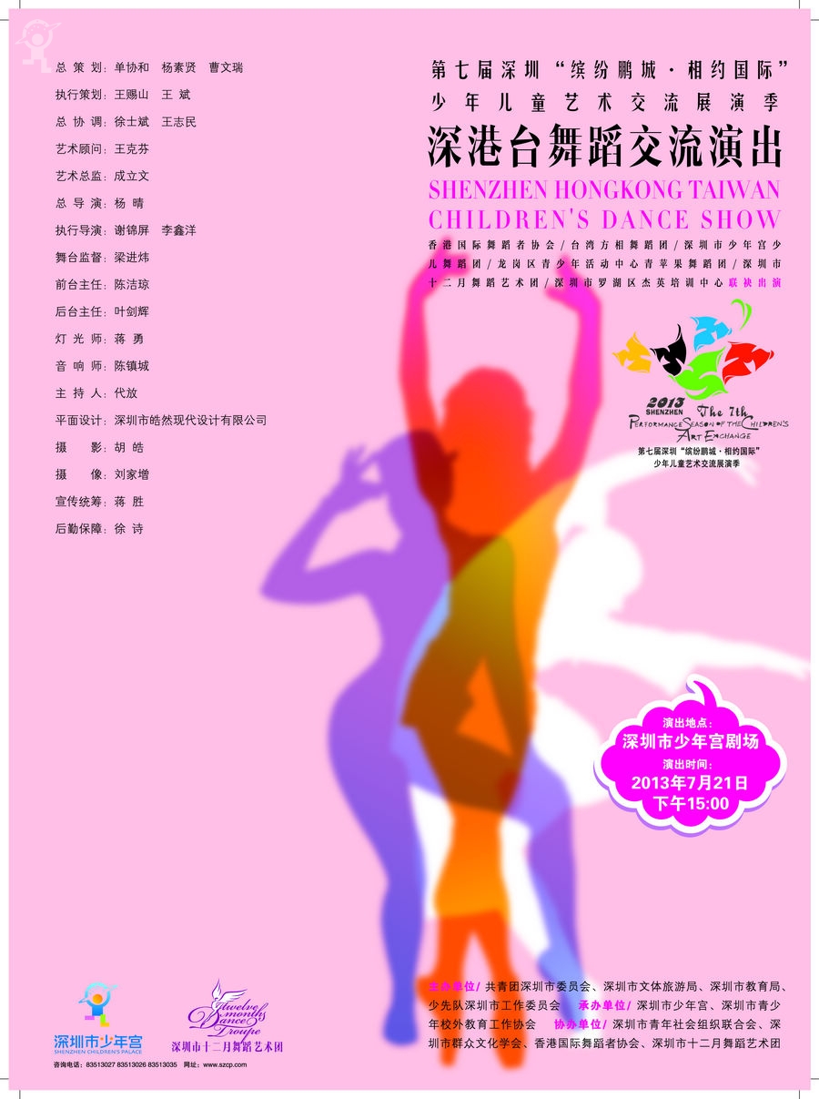 由团市委、市文体旅游局、市教育局、市少工委联合主办,市少年宫、市青少年校外教育工作协会承办的第七届深圳“缤纷鹏城•相约国际”少年儿童艺术交流展演季——深港台舞蹈交流演出将于7月21日下午15:00在少年宫剧场隆重上演。此次演出由来自深港台的6支少儿舞蹈团队联袂奉献,门票将采取“电话预约+以书换票”的方式发放。凡在指定时间拨打电话并成功预约的市民,可凭5本图书兑换一张演出门票(每人最多兑换2张)。兑换的图书限青少年课外读物,教材除外,新旧均可。所有通过门票兑换征集到的图书将定向捐赠给深圳对口帮扶的贫困地区。市民可拨打热线83513011,83513049预约登记,接受订票工作时间为:7月19日上午9:30-11:30,下午14:30-16:30,订完即止。成功预订的市民可在7月21日下午13:30—15:00,在少年宫一楼大厅咨询台换票。