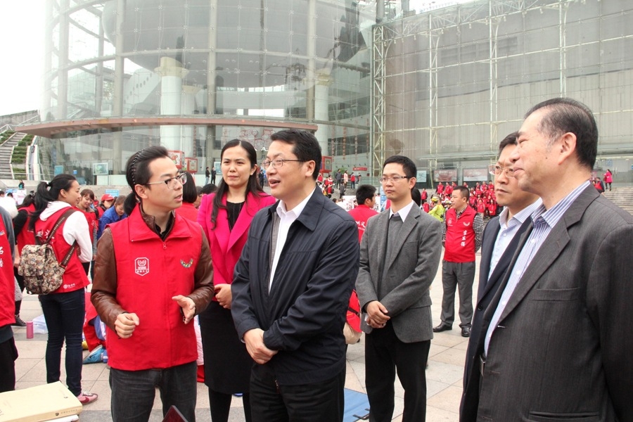 市委常委、组织部长张虎同志、原市政协副主席、市志愿服务基金会主席廖军文同志、团市委书记蔡颖同志、市委宣传部副部长陈金海同志、市关爱办副主任陈励同志一起观摩了优秀志愿服务项目展,观看了义工伙伴们自编自导自演的节目,并为大家送去了元宵佳节的祝福!张虎部长在讲话中勉励大家:要把志愿精神的种子播撒到更多的人心中,成为深圳这座城市独特的精神品格;要推广志愿文化,让文明基因在青少年中生根发芽,引导和推动全体市民树立文明观念、争当文明公民,推动深圳城市文明建设;要把推进志愿服务与城市文明建设、社会治理创新等紧密结合起来,推动志愿服务品牌化、专业化、社会化、国际化发展,让志愿服务成为城市公共服务的重要补充。