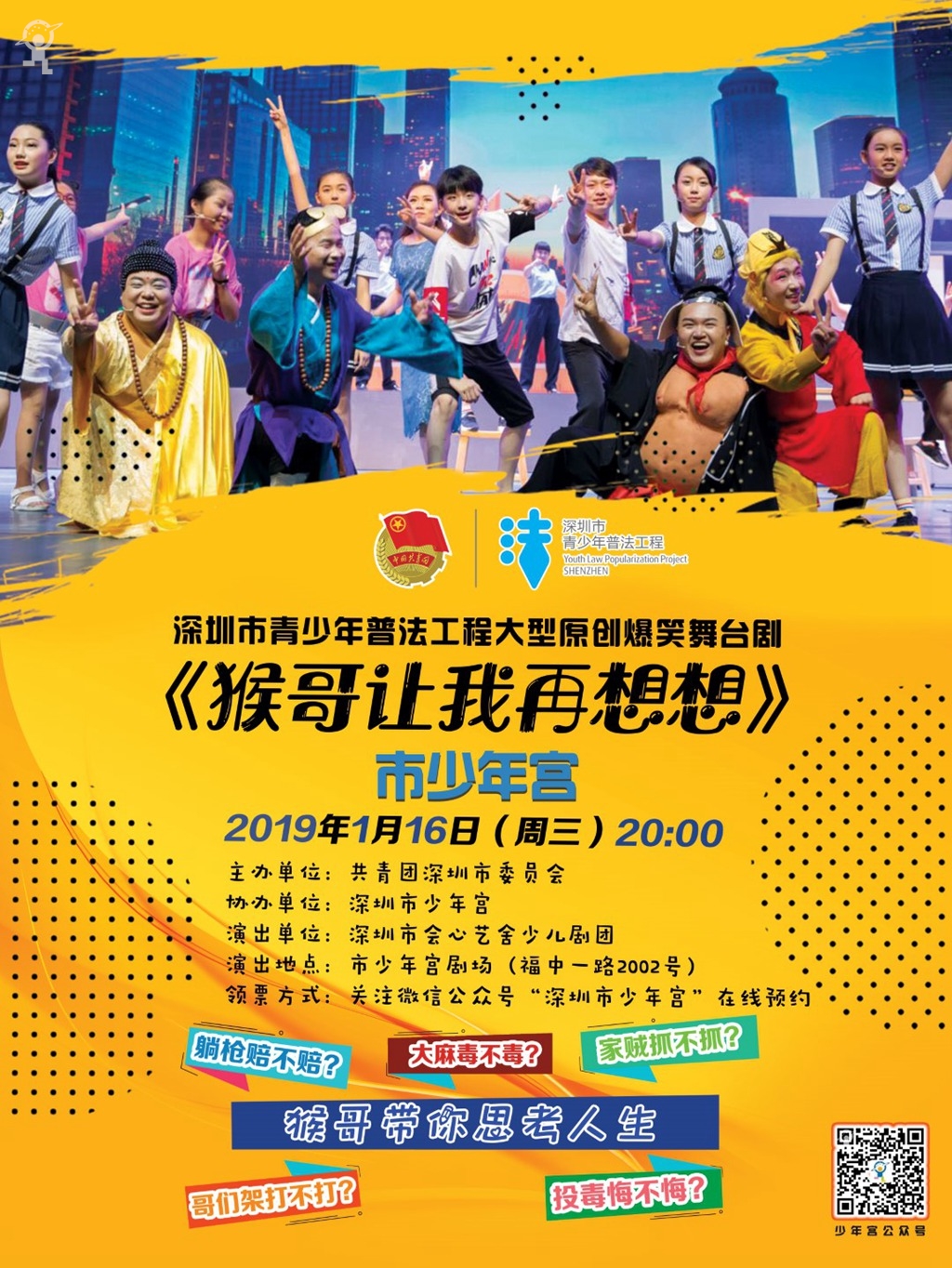 青少年普法工程原创爆笑舞台剧《猴哥让我再想想》即将上演——内附抢票秘笈