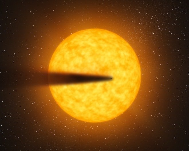 5月份开普勒发现了一颗拥有酷似彗星尾巴的燃烧星球,在1500光年外围绕一颗恒星运转。这颗恒星比太阳更小更凉爽,而且小行星有水星大小,每16小时围绕恒星运转一圈,它正在逐渐的分解成为灰尘。这个星球大约2亿年内将完全毁灭。